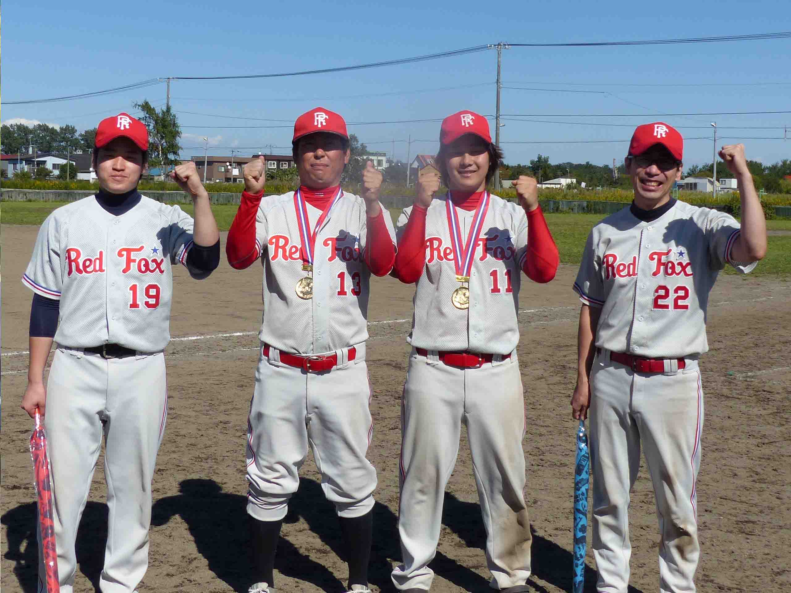その後、工藤、上野らのヒットで2点、4回にも1点を加え、最終回はリリーフ佐竹が抑える完封リレーでREDFOXが優勝を勝ち取った。